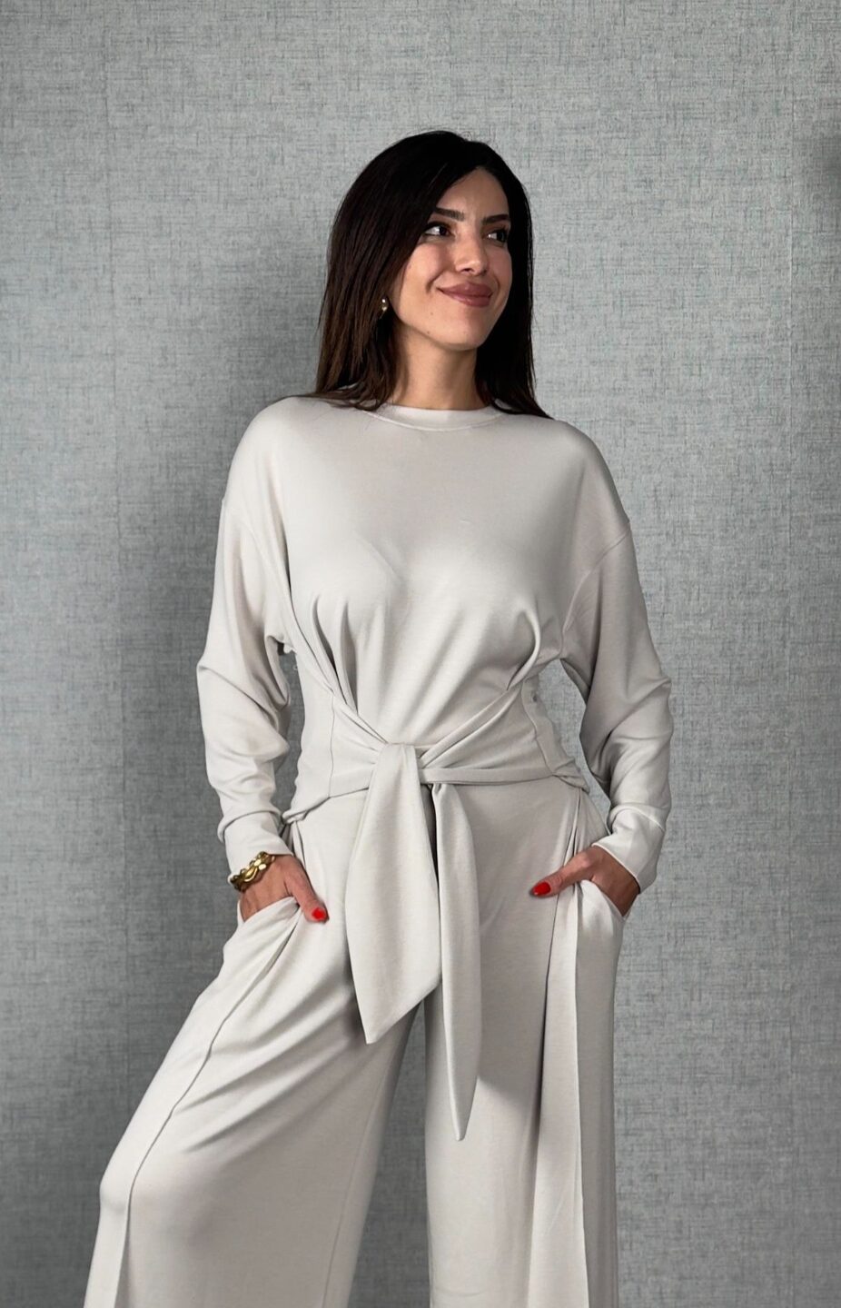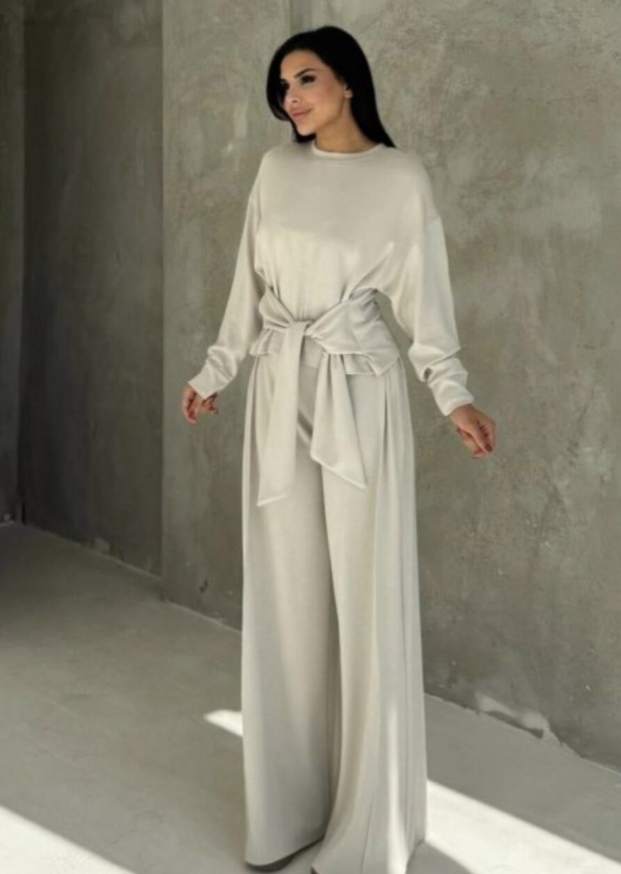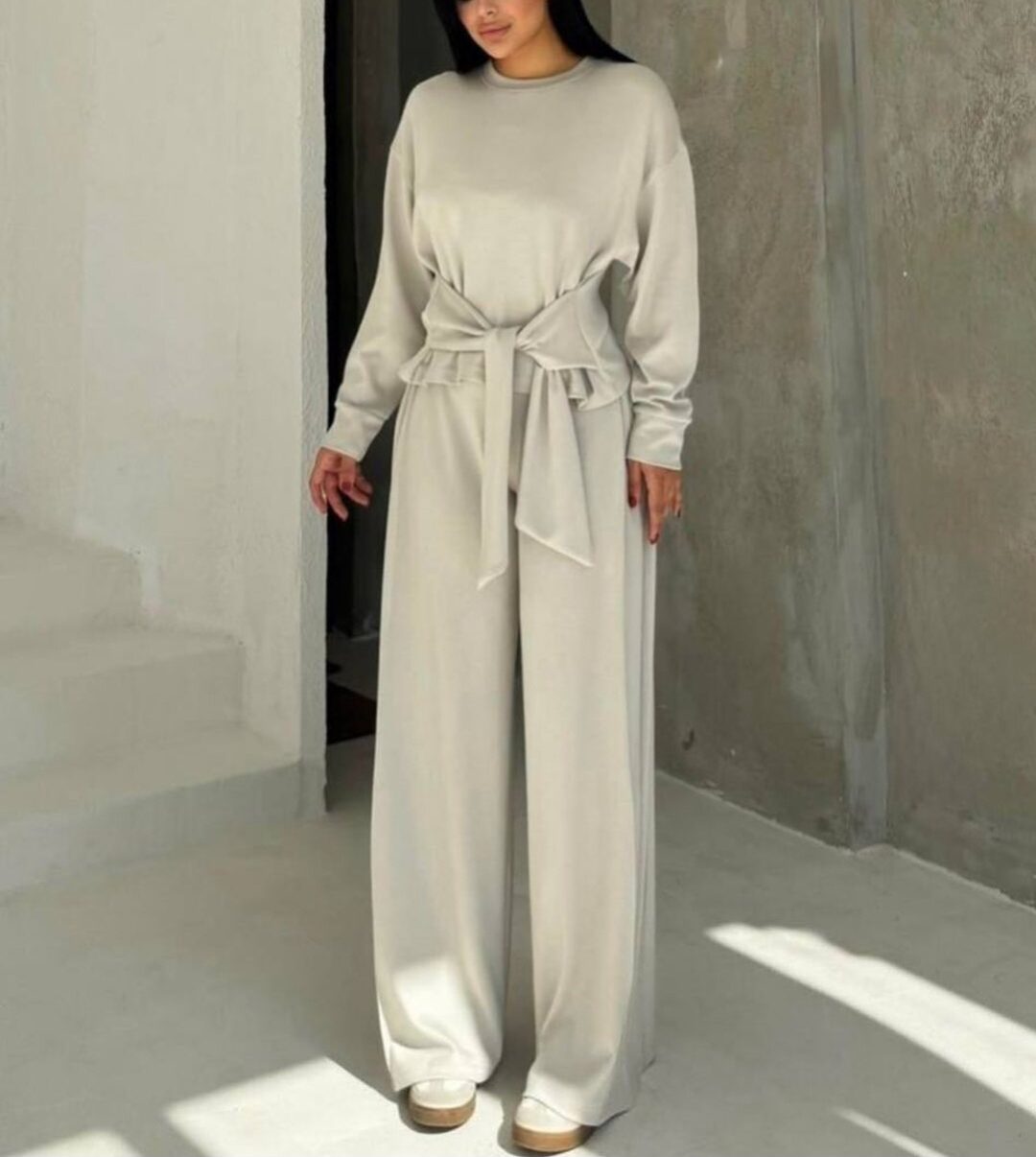 Step into effortless style with the Grayish 2-Piece Set with Belt Detail from Allure Adornments. This chic set features a coordinating top and matching pants, with a stylish belt accent that adds a flattering silhouette — perfect for casual outings or relaxed home days.