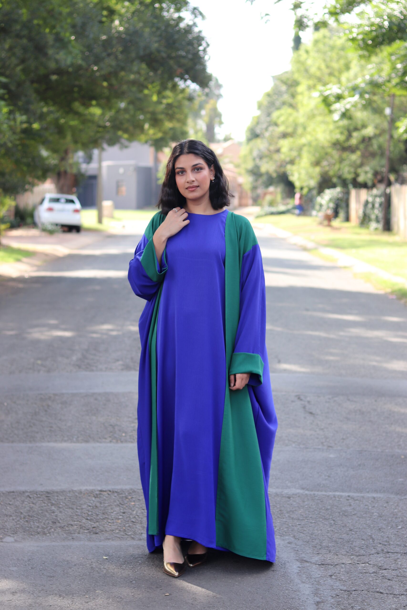 Step out in elegance with the Inner Dress, Scarf & Abaya Set from Allure Adornments. This coordinated set includes a flowing inner dress, matching scarf, and beautifully designed abaya, offering a complete, stylish ensemble for any occasion. Available in stunning purple and green design, it combines comfort with sophistication.